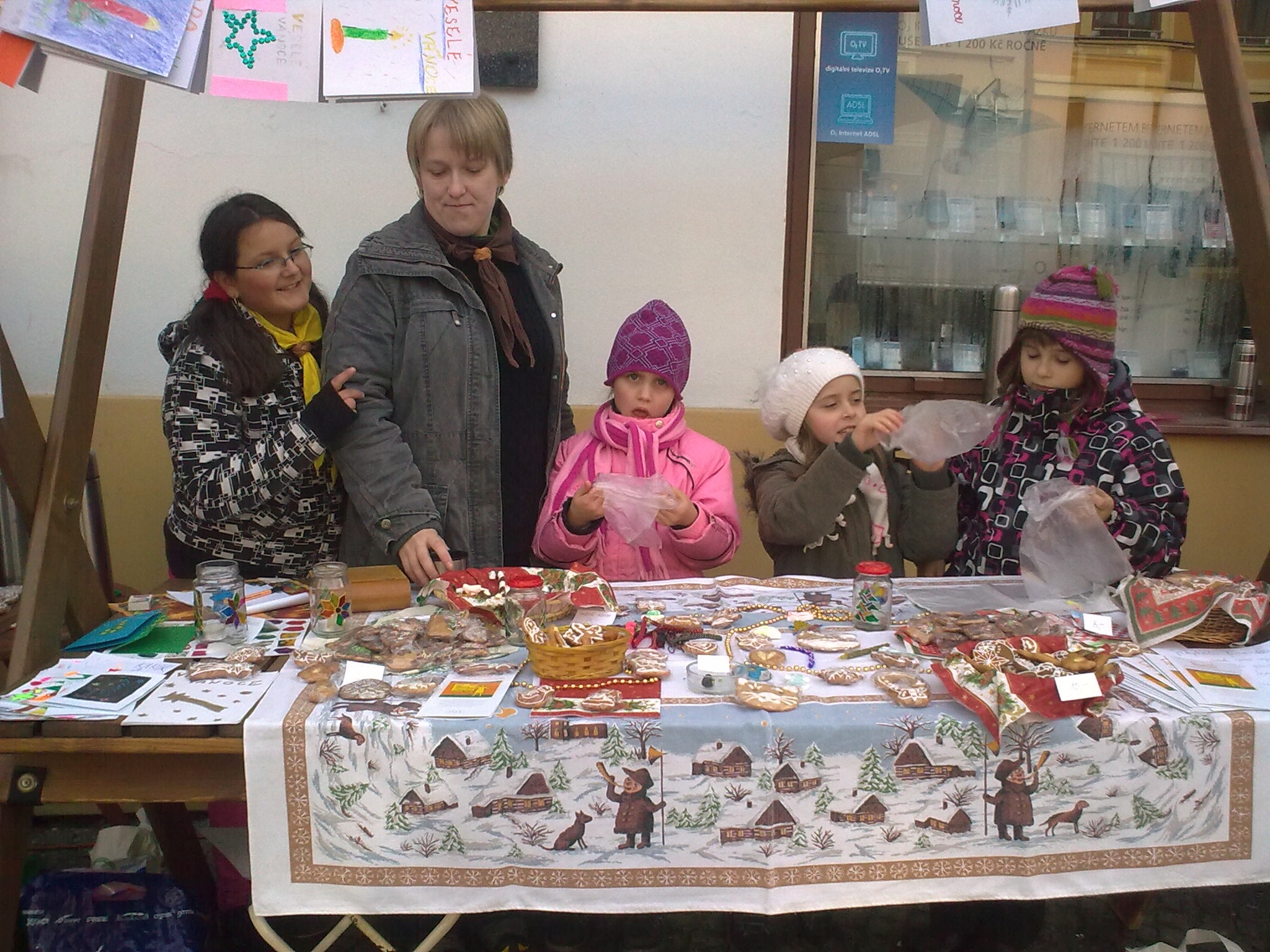 04.12.2011 17:38V sobotu 26.11. vimperské skautky a světlušky prodávaly na adventních trzích ve Vimperku své výrobky - náušnice, kamínky štěstí, ozdoby na stromeček, vizovické pečivo, malované perníčky, vánoční přání a mnoho dalších... Výtěžek sbírky bude darován prachatickému hospici Jana Nepomuka Neumanna. Skautkám se díky štědrosti návštěvníků trhů podařilo vybrat téměř 4000,- Kč :-)